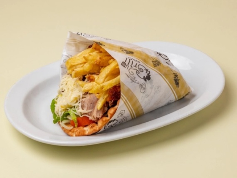 Συνοδεύεται από πίτα, πατάτες τηγανητές, ντομάτα, κρεμμύδι & γιαούρτι